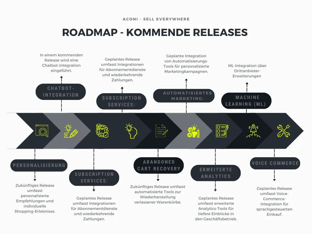 Aber wir wollen nicht nur unsere Vision verwirklichen - wir wollen sicherstellen, dass Ihre Bedürfnisse und Anforderungen ebenfalls berücksichtigt werden. Deshalb ermutigen wir Sie, uns jederzeit zu kontaktieren, falls Sie etwas Wichtiges für Ihren Shop vermissen oder spezielle Funktionen benötigen. Ihre Meinung ist uns wichtig und wir sind immer bereit zuzuhören, um unsere Roadmap noch besser auf Ihre Bedürfnisse abzustimmen.